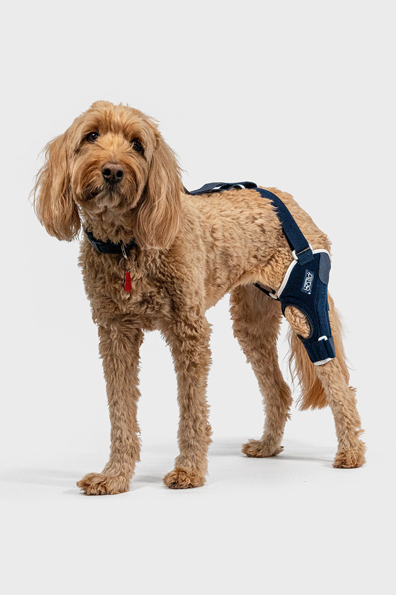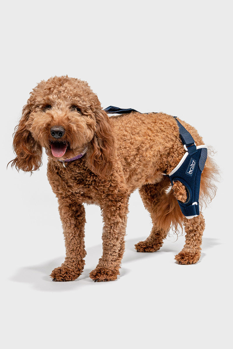 The Balto® Jump stifle knee brace is carefully designed to stabilize your dog's post-traumatic or acquired knee joint deficiency. The Balto® Jump is designed to support one of the most common injuries in canines, Cranial Cruciate Ligament (CCL) trauma. Annually impacting millions of patients, CCL injuries encompass various complications including patellar luxation, arthrosis, arthritis, varus/valgus instability, and luxation of the ligament. This canine knee joint device is an excellent remedy for canines with restricted mobility due to CCL joint injuries. Constructed from a breathable compression material and constructed from a material other than neoprene, it gives your dog's hind limbs support and stability without impeding their natural movement. When a dog maintains an active lifestyle and requires additional knee support, this knee brace is an outstanding option.